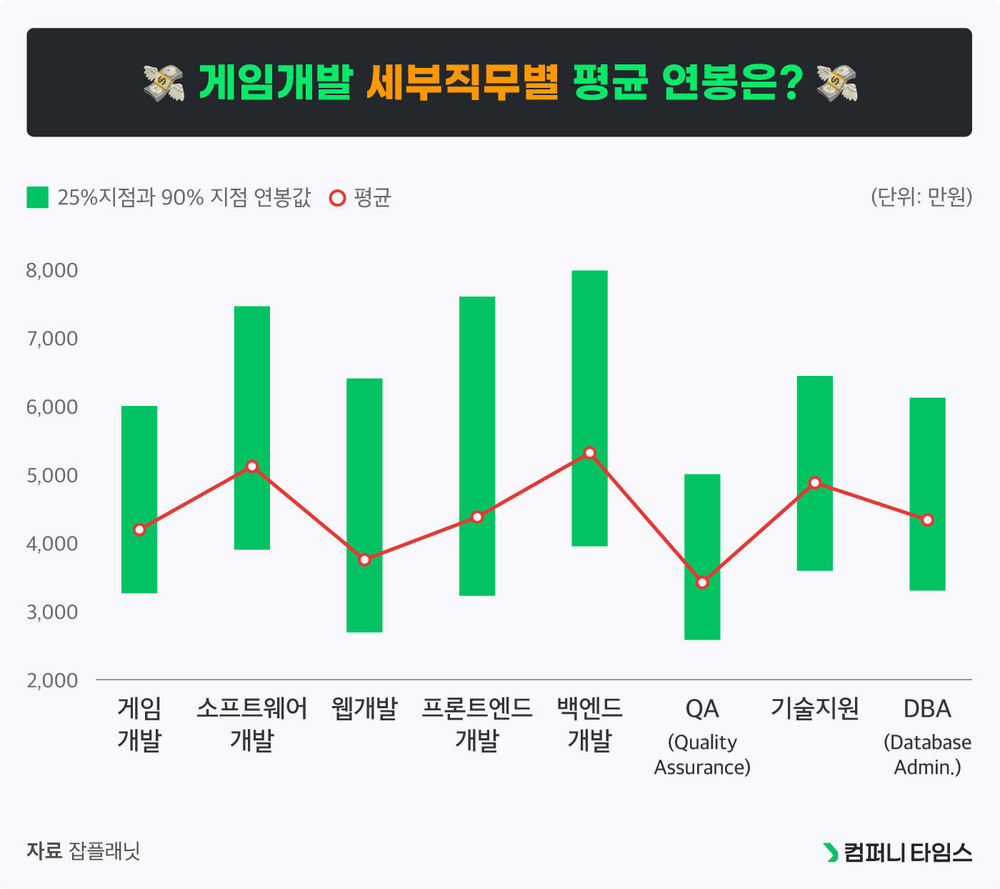 ๊ฒ์ ํ๋ก๊ทธ๋๋จธ ์ธ๋ถ ์ง๋ฌด๋ณ ์ฐ๋ด ๋น๊ต