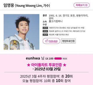 - 팬들의 투표를 통해 매주 순위가 결정됩니다.